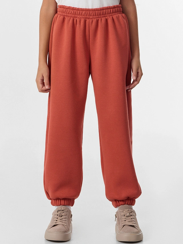 Оранжевые брюки для девочек из мягкого футера с начесом — отличный вариант для повседневной носки. Модель с эластичным поясом и средней посадкой обеспечивает комфорт в течение всего дня.