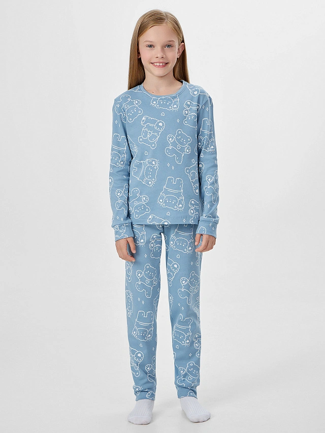 Очаровательный домашний комплект для девочки создан для комфортного отдыха и крепкого сна. В набор входит джемпер свободного кроя с длинными рукавами и удобные брюки прямого силуэта - идеальная пижама для девочки для прохладных вечеров.