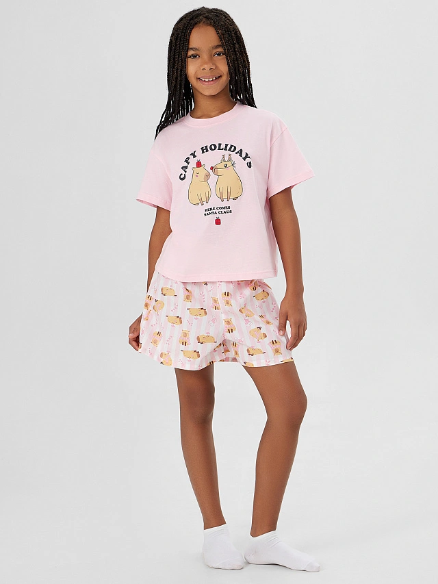 Комплект домашний для девочек с надписью "Capy Holidays"