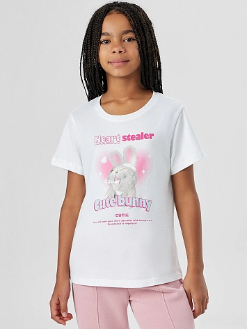 Футболка для девочек белая с принтом "cute bunny"