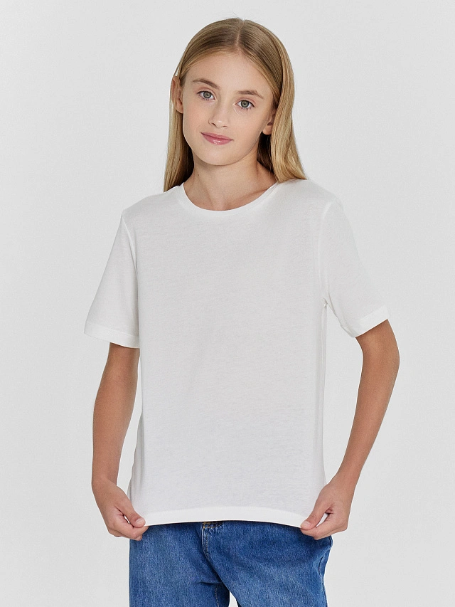 Футболка для девочек из высококачественного хлопка. Рукава - чуть выше локтя, линия плеча спущена. Горловина круглой формы из рибаны. Модель отличается стильным и лаконичным дизайном, идеально подходящим для девочек любого возраста. Круглый вырез горловины и прямой силуэт придают ей изящный и женственный вид, подчеркивая нежность и очарование юной модницы. Благодаря использованию натуральных дышащих материалов, эта футболка создает коже дышать, предотвращая перегрев и раздражения. Особая обработка гарантирует, что швы будут мягкими и не доставят дискомфорта при носке. Многообразие ярких, жизнерадостных расцветок, от пастельных нежных оттенков до насыщенных глубоких тонов, позволит вашей малышке выбрать футболку, идеально подходящую к ее индивидуальному стилю и настроению. Изящные принты и аппликации придают модели неповторимый шарм, делая ее настоящим украшением детского гардероба.