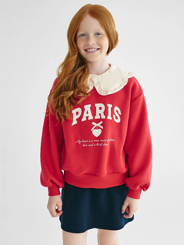 Джемпер для девочек красный с принтом и надписью "Paris"