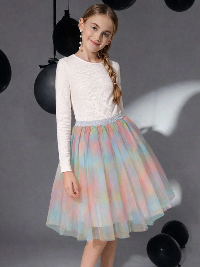 Очаровательное платье для девочек от Mark Formelle. Модель полуприлегающего силуэта с отрезной фатиновой юбкой. Длина выше колена. Горловина круглая. Рукав длинный. Юбка трехслойная на сборке, верхние два слоя из сеточки, подкладка из трикотажного кулирного полотна. Блестящий пояс из жаккардовой тесьмы. Ваша маленькая принцесса будет сиять в этом волшебном платье на любом мероприятии! Свободный крой позволит ей легко двигаться и наслаждаться каждым мгновением, а разнообразие размеров и цветов даст возможность выбрать идеальный вариант, который подчеркнет ее неповторимый стиль. Рекомендуем!