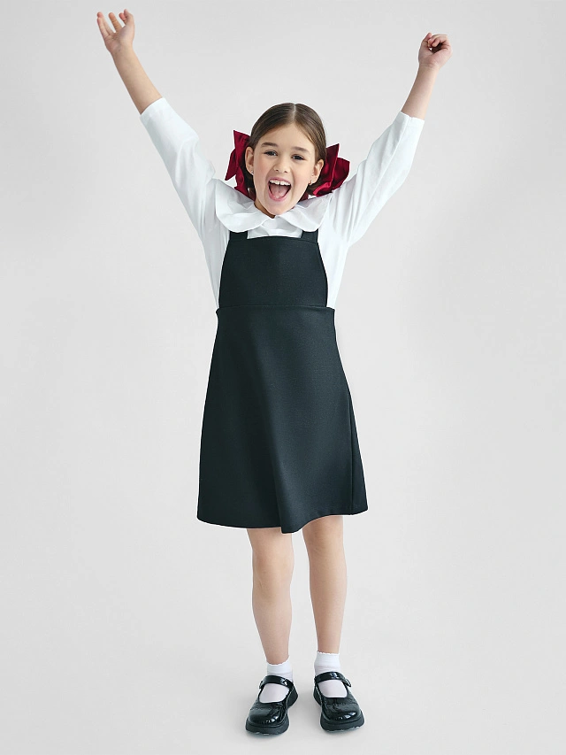 Сарафан для девочек — идеальный вариант для школы: удобный, аккуратный и с продуманными деталями. Мягкая сборка на спинке в районе талии обеспечивает комфортную посадку и позволяет свободно двигаться в течение дня. Лиф с отделочными строчками добавляет аккуратности, а расширенная юбка делает образ более легким и динамичным. Регулируемые бретели на пуговицах позволяют подстроить длину по росту ребенка, что особенно удобно в процессе роста. Низ сарафана аккуратно обработан швом в подгибку с закрытым срезом — такая отделка сохраняет эстетичный вид и устойчивость к износу. Материал "академик" отличается прочностью и хорошо держит форму, поэтому изделие остается опрятным даже после многократных стирок.