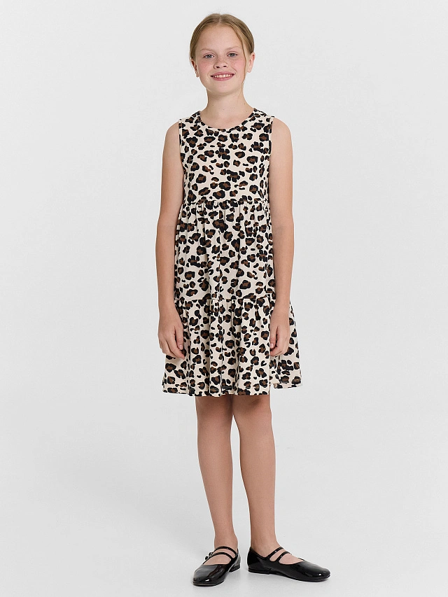 Платье для девочек без рукавов из легкой трикотажной кулирки — это идеальный выбор для летнего сезона. Круглая горловина подчеркивает аккуратность исполнения, а отрезные воланы по нижней части добавляют воздушности и игривого настроения. Натуральный хлопковый материал обеспечивает отличную воздухопроницаемость и комфорт даже в жаркую погоду. Модель подходит для прогулок, отдыха и повседневной носки, сочетая в себе практичность и очаровательный дизайн.