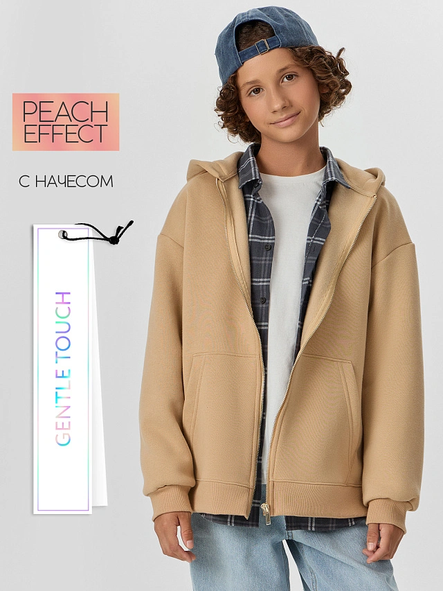 Толстовка для мальчиков бежевая на молнии