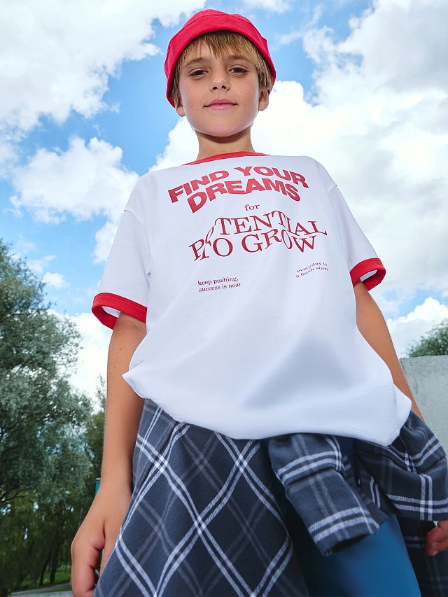 Футболка для мальчиков белая с надписью "find your dreams"