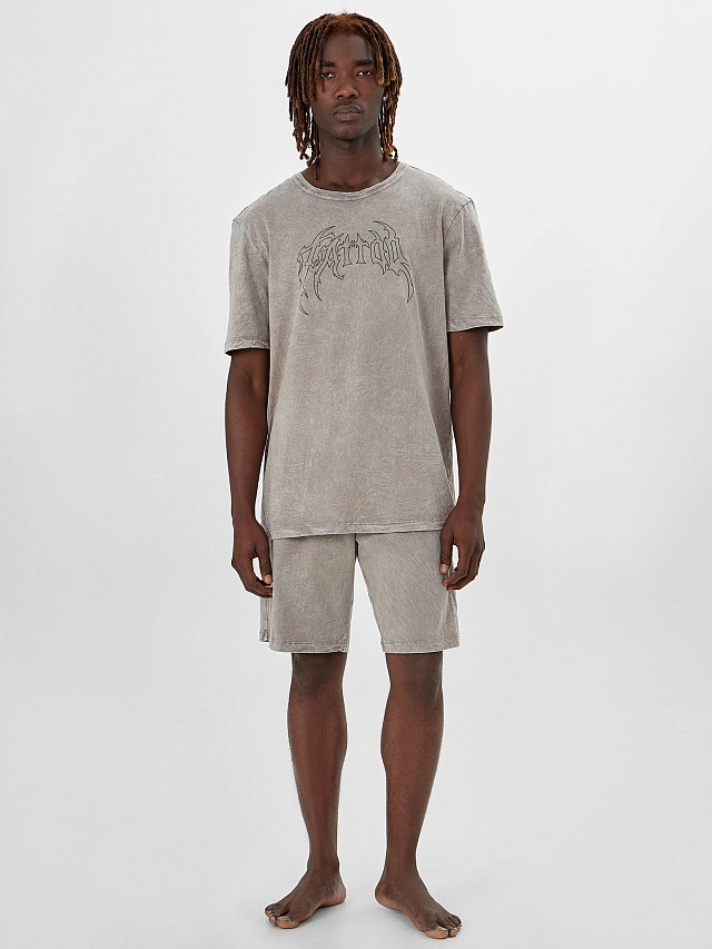 Комплект домашний мужской серый с принтом