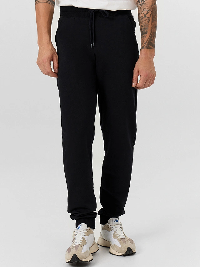Мужские однотонные брюки для дома, отдыха и спорта. Выполнены из приятного к телу трикотажного полотна. Облегание свободное, длина классическая. Штанины на манжетах. Внутренние карманы на подкладке. Широкий пояс с эластичной тесьмой и регулировочным шнуром. Комфортная модель!
