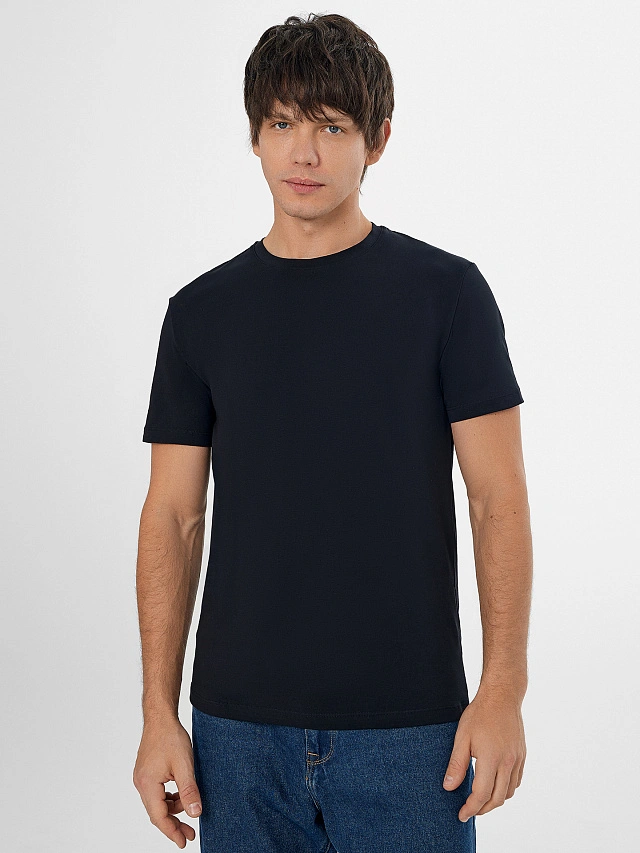 Черная мужская базовая футболка — это универсальная модель прямого кроя для повседневной носки. Она выполнена из хлопка с добавлением эластана, который обеспечивает мягкость, эластичность и комфортное прилегание.