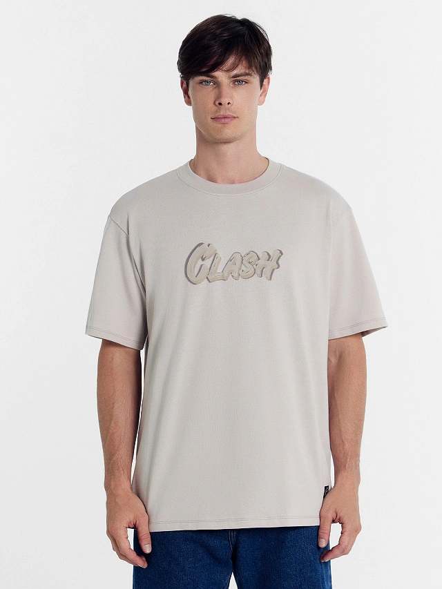 Футболка мужская оверсайз с печатью в виде надписи "Clash / Столкновение". Горловина круглой формы. Спущенная линия плеча и углубленная пройма гарантируют свободу движений. Рукава широкие, до локтя. Базовая хлопковая модель, которая отлично вписывается в повседневный образ. Ее можно надеть на работу и учебу, если у вас нет строгого дресс-кода. Оптимальна для носки в любое время года. Универсальная и будет прекрасно сочетаться с другими вещами в вашем гардеробе. Свободная футболка подойдет мужчинам любого роста и комплекции. В линейке широкая размерная сетка. Рекомендуем!