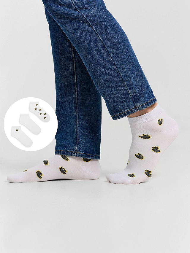 Набор из трех пар укороченных мужских носков с узором в виде злых уток — это оригинальное и практичное дополнение к повседневному гардеробу. Модель выполнена из хлопка с добавлением эластана и полиамида, благодаря чему носки мягкие, дышащие и хорошо облегают стопу, не теряя форму после стирок. Укороченная длина делает их удобными для теплого времени года и спортивной обуви, а жаккардовый рисунок с утками добавляет яркий акцент и подчёркивает индивидуальность. Такой комплект подойдет тем, кто ценит комфорт и не боится выразить себя в деталях.