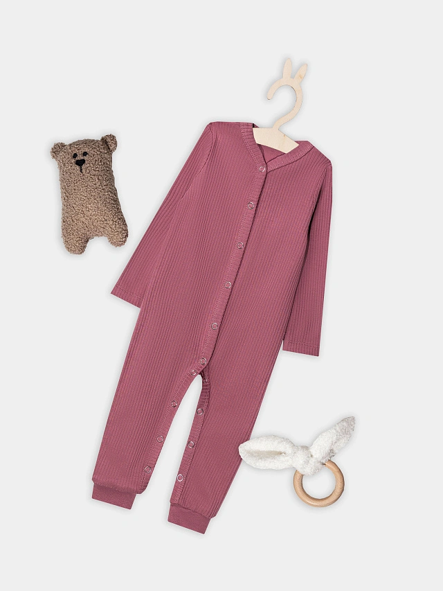 Детский комбинезон розовый — это уютный и практичный вариант для самых маленьких. Модель выполнена из мягкого хлопка в рубчик, который сохраняет тепло, позволяет коже дышать и не вызывает раздражения. Спинка цельнокроеная, а передняя часть имеет застежку по всей длине и на обеих ножках — это упрощает переодевание и смену подгузника.