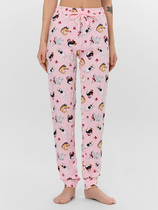 Брюки домашние женские с принтом котиков