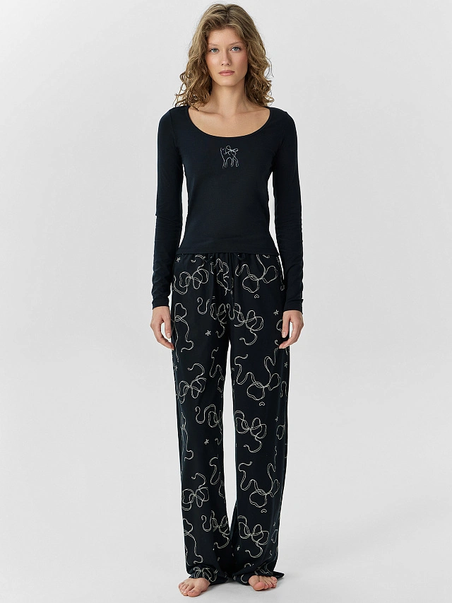 Комплект домашний женский черный с принтом