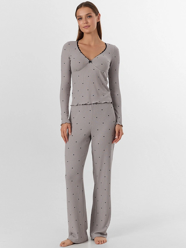 Изящные сердечки добавляют комплекту женственности и шарма. Натуральная вискоза в составе обеспечивает воздухообмен, а эластан сохраняет идеальную посадку. Комплект подойдет тем, кто ценит в домашней одежде не только удобство, но и эстетику деталей. Идеальный вариант для расслабленного вечера или спокойного дня дома.