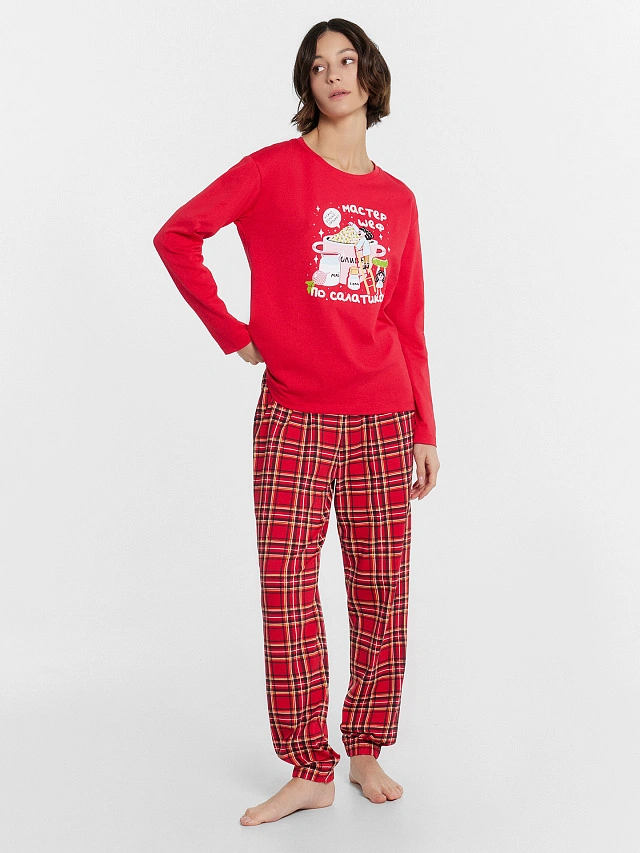 Пижама женская красная с принтом и надписью "мастер шеф по салатикам"