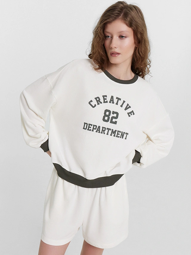 Комплект домашний кремовый с принтом и надписью "creative department"