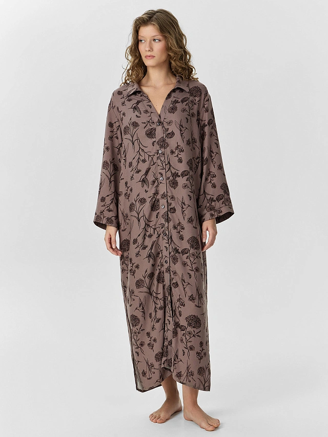 Платье женское домашнее коричневое с цветочным принтом