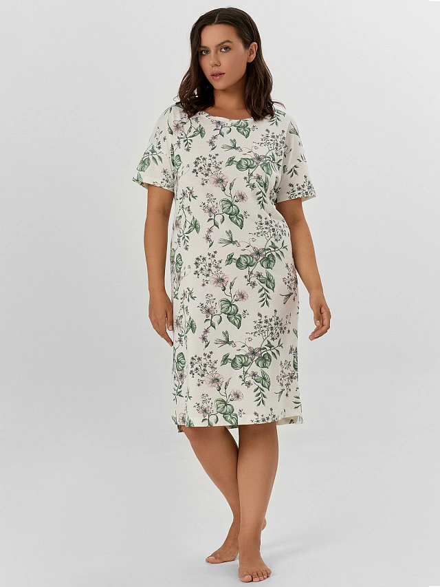 Сорочка ночная женская кремовая с цветочным принтом