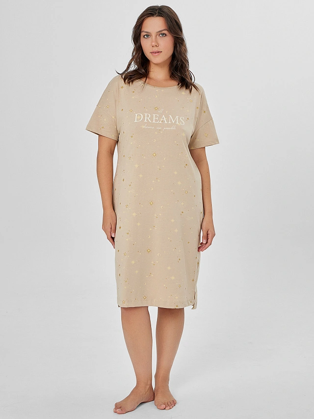 Сорочка ночная женская бежевая с надписью "all dreams..."