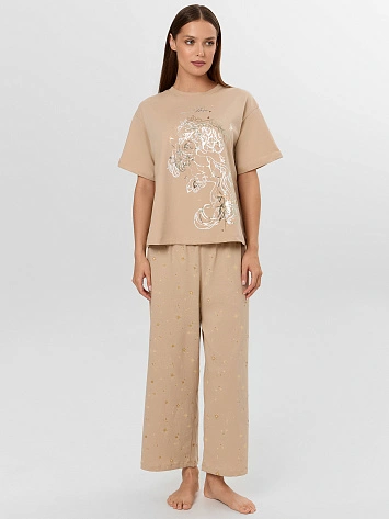 Комплект домашний женский бежевый с надписью "time to shine"