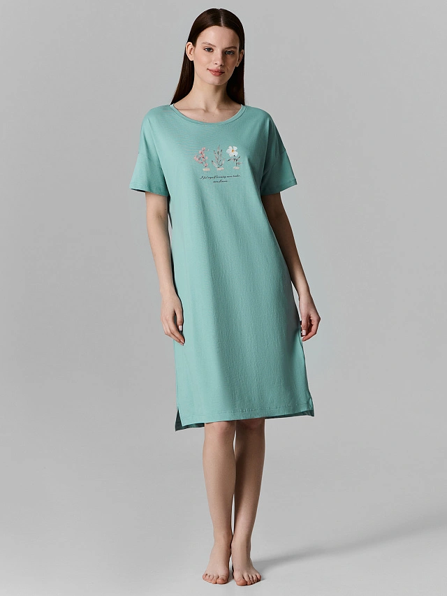 Сорочка ночная женская зеленая с весенними цветами