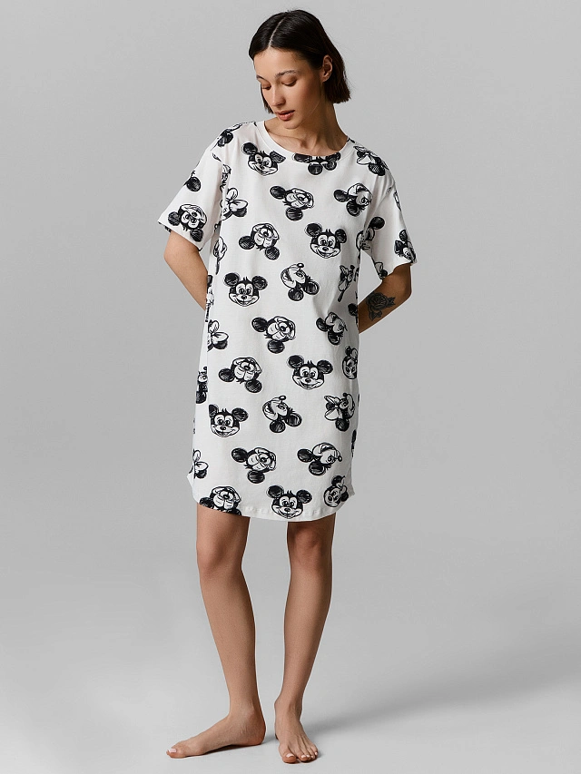 Туника ночная женская кремовая с принтом "Микки Маус"