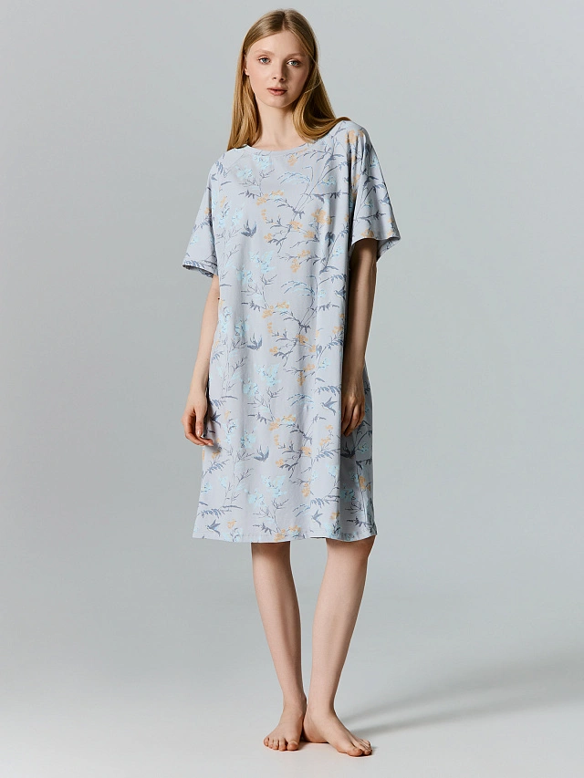 Сорочка ночная женская серая с цветочным принтом