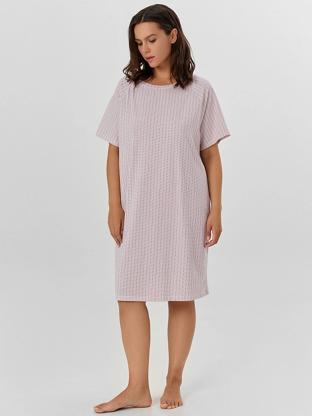 Женская сорочка — комфортный и универсальный вариант для повседневного гардероба. Прямой силуэт обеспечивает свободную посадку, позволяя чувствовать себя уверенно и удобно в течение дня. Круглая горловина добавляет классический акцент, а короткие рукава реглан делают модель еще более комфортной, обеспечивая свободу движений. Нижний срез сорочки и рукавов обработан швом вподгибку, что придает аккуратность и увеличивает долговечность изделия. Материал — хлопковая кулирка — мягкий, приятный на ощупь и отлично пропускает воздух, создавая ощущение легкости и комфорта при носке. Простая, стильная и удобная — прекрасный выбор для тех, кто ценит качество и комфорт в одежде!