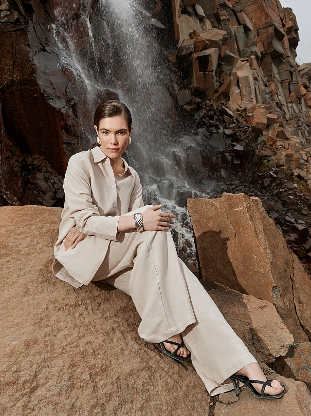 Женская рубашка свободного силуэта станет стильным и удобным элементом вашего гардероба. Изготовленная из натурального сочетания льна и вискозы, она отражает все преимущества этих материалов. Лён обеспечивает отличную воздухопроницаемость и комфорт в жаркую погоду, а вискоза добавляет мягкость и приятные ощущения при носке. Модель имеет классический воротник и длинные рукава с манжетами, что придает ей элегантный и утонченный вид. Спущенная линия плеча и углубленная пройма создают современный и расслабленный силуэт, который обеспечивает свободу движений и комфорт. Застежка на пуговицах добавляет удобство и позволяет легко надевать и снимать рубашку. Этот универсальный элемент гардероба идеально подходит как для повседневного ношения, так и для создания более формальных образов.