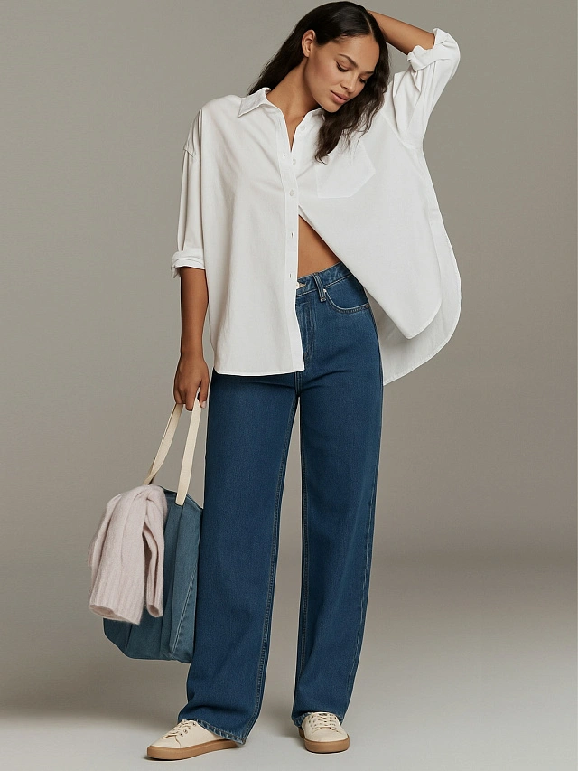 Эти джинсы станут надежной основой гардероба — их можно комбинировать с футболками, рубашками, свитерами и пиджаками. Практичный синий цвет подходит для любого времени года и различных ситуаций: от прогулок по городу до встреч с друзьями или работы в офисе. Они подчеркнут вашу естественную красоту и обеспечат комфорт в любой обстановке.