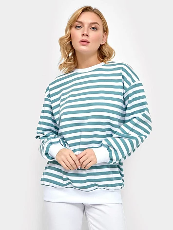 Свободный джемпер-тельняшка в бело-бирюзовую полоску