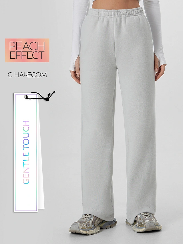 Женские брюки прямого кроя из коллекции Gentle Touch — эталон повседневного комфорта и стиля. Модель выполнена из инновационного футера с пич-эффектом, который создает на поверхности ткани бархатистую текстуру для особо нежных тактильных ощущений.