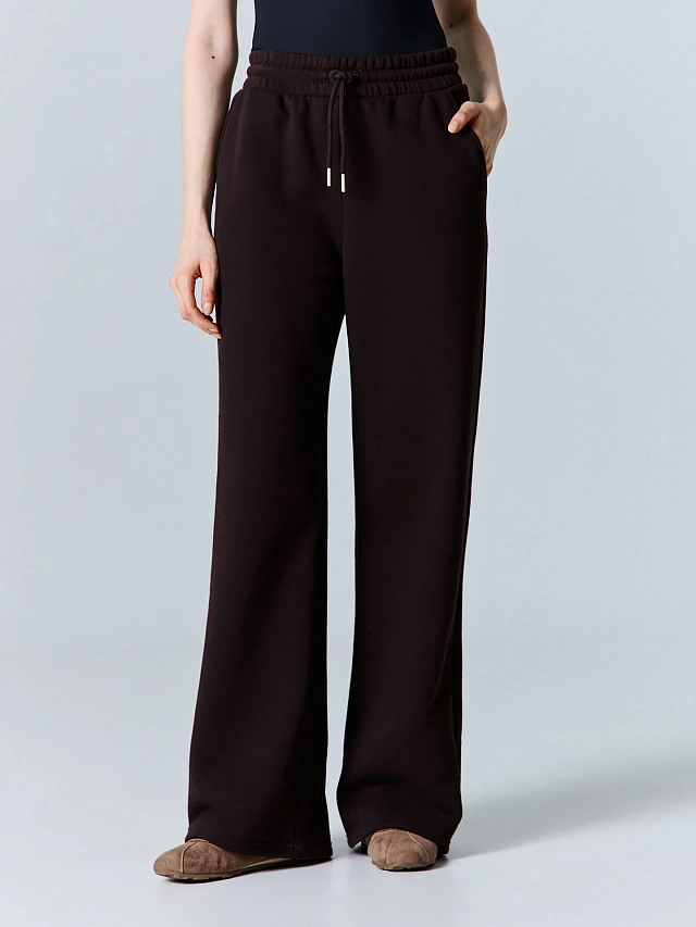 Брюки выполнены из мягкого и плотного футера, который сочетает натуральный хлопок и практичный полиэстер. Этот состав обеспечивает отличную воздухопроницаемость, прочность и способность сохранять форму в течение всего дня. Удобный пояс с внутренней резинкой и декоративным шнурком позволяет регулировать посадку, а практичные карманы с мягкой подкладкой добавляют функциональности.