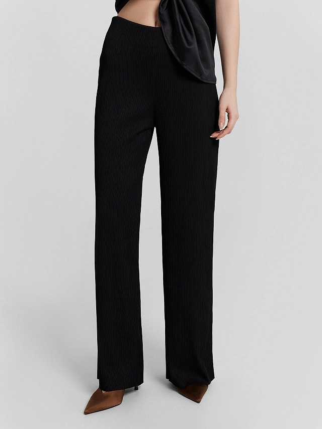 Элегантные женские брюки из коллаборации Mark Formelle и Ляйсан Утяшева — это стильный выбор для женщин, стремящихся выглядеть модно и комфортно в любой жизненной ситуации. Изготовленные из высококачественного материала, эти брюки обеспечат вам непревзойденную мягкость и свободу движений. Их прямой силуэт подчеркнет вашу женственность, придавая одновременно строгости и элегантности. Цельнокроеный пояс гарантирует идеальную посадку и поддержку в области талии, а жаккардовая эластичная тесьма внутри пояса добавляет дополнительный комфорт и плавное прилегание. Брюки также обладают стильными деталями на задних частях, такими как вытачки, которые придают дополнительную форму и подчеркивают формы. Низ брюк имеет сырой срез, что делает их особенными и изысканными. Данная модель полной длины, что позволяет вам создавать различные образы — от деловых до повседневных. Благодаря своему стильному дизайну и превосходному качеству, эти брюки станут незаменимой частью вашего гардероба. В этих брюках из новой капсульной коллекции вы будете чувствовать себя уверенно и выглядеть шикарно в любой ситуации. Рекомендуем!