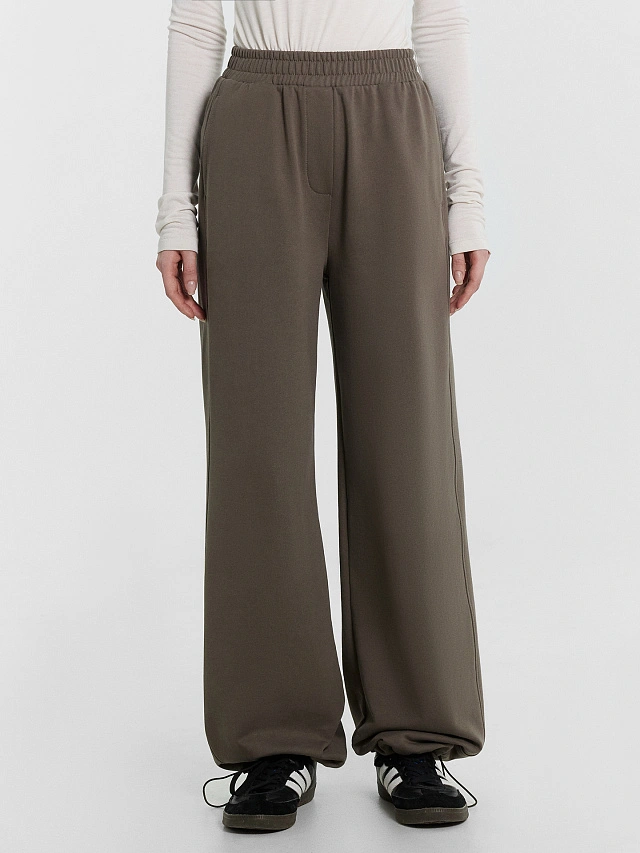 Женские брюки в спортивном стиле. Модель свободного силуэта, выполненная из футера, обеспечит вам комфорт и стиль в любое время года. Эластичный пояс гарантирует удобную посадку, а боковые карманы добавляют практичности. Нижняя часть изделия оснащена кулиской, что позволяет регулировать объем брючин по вашему желанию. Эти брюки станут отличным дополнением к вашему повседневному гардеробу, создавая спортивные расслабленные образы.