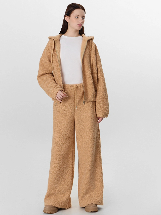 Универсальный бежевый цвет легко сочетается с любым верхом — от объемных свитеров до облегающих водолазок. Эти брюки станут идеальным выбором для домашнего отдыха, прогулок в прохладную погоду или создания актуального образа.