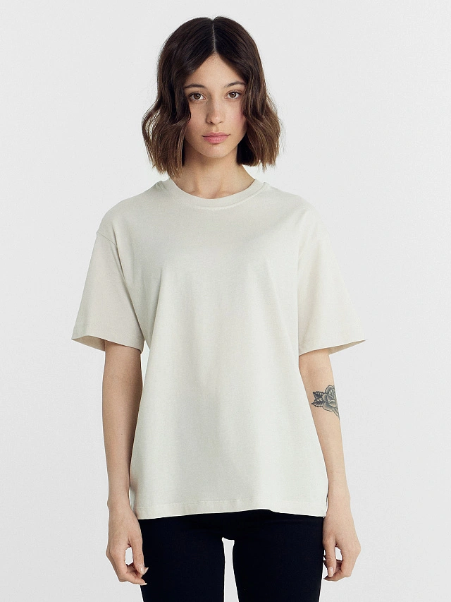 Белая футболка отличная. Базовая, оверсайз, не просветивает. На высокий рост 175+ не короткая. Рекомендую