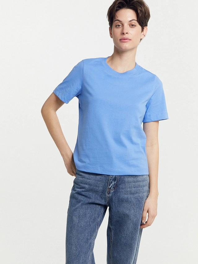 Отличная футболка. Плотная. Хорошая широкая резинка на горловине. Взяла себе вначале белую, потом чёрную, вот пришла заказать голубую.