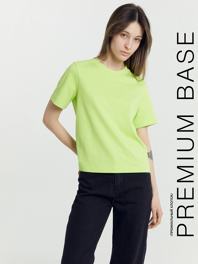 Отличная футболка, цвет яркий салатовый, но в меру. Хорошо смотрятся под джинсы
