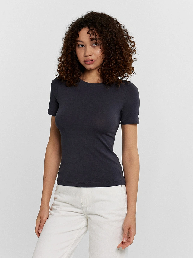 Женская футболка прилегающего силуэта – стильное и комфортное решение для повседневного гардероба. Модель с круглой горловиной и короткими рукавами идеально подчёркивает фигуру, придавая изящность и элегантность. Нижние срезы футболки и рукавов аккуратно обработаны швом вподгибку, что обеспечивает долговечность и аккуратный вид. Изготовленная из мягкой и приятной кулирки, эта модель дарит комфорт и удобство в течение всего дня. Прекрасно сочетается с различными элементами гардероба, позволяя создавать разнообразные и стильные образы.