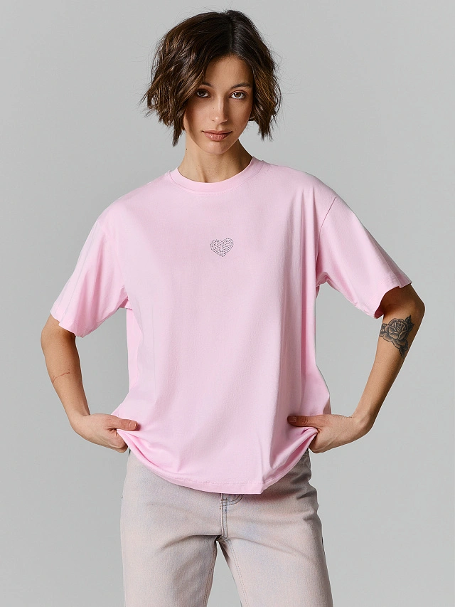 Футболка в нежном розовом оттенке с трогательным сердечком — тёплый и искренний подарок на 14 февраля, который говорит о чувствах без лишних слов. Свободный оверсайз-силуэт создаёт уютный, расслабленный образ, в котором так комфортно гулять, встречаться с друзьями или просто отдыхать. Мягкий розовый цвет и милый принт добавляют нотку романтики и нежности.