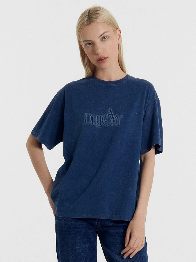 Футболка женская синяя с печатью