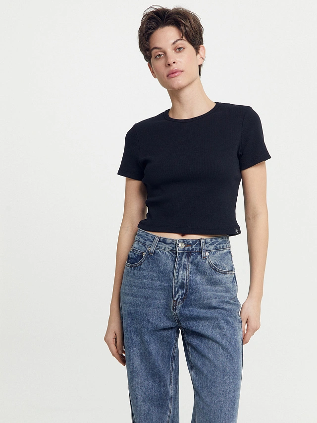 Футболка женская короткая в черном цвете