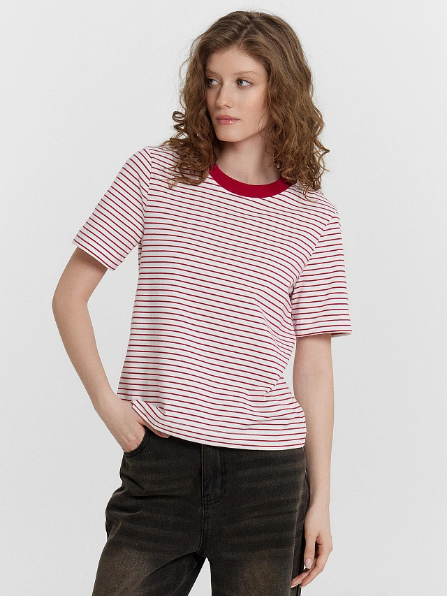 Женская футболка прямого силуэта – сочетание простоты и изящного стиля. Модель выполнена из качественной хлопковой кулирки, обеспечивающей комфорт и воздухопроницаемость. Круглая горловина с широкой обтачкой из рибаны придаёт изделию аккуратный и завершённый вид, а широкий рукав добавляет современности и свободы движений. Слегка укороченный фасон подчёркивает стильный образ, а широкая подгибка низа и рукавов делают акцент на деталях, создавая гармоничный внешний вид. Эта футболка станет универсальным элементом вашего гардероба, легко сочетающимся с джинсами, шортами или юбками. Идеальный выбор для тех, кто ищет баланс между удобством и стильным дизайном.