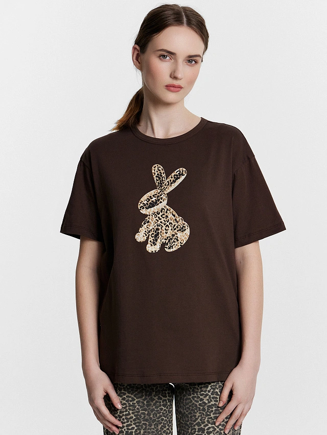 Женская футболка прямого свободного кроя станет идеальным дополнением вашего гардероба. Горловина круглой формы и короткие рукава обеспечивают классический и комфортный образ. Нижний срез модели обработан швом вподгибку, что придает изделию аккуратный вид. Изделие выполнено из кулирки — материала, отличающегося отличной воздухопроницаемостью и мягкостью, что делает его идеальным для повседневной носки. Кулирка отлично сохраняет форму, не растягивается и не теряет цвет после стирки при правильном уходе.