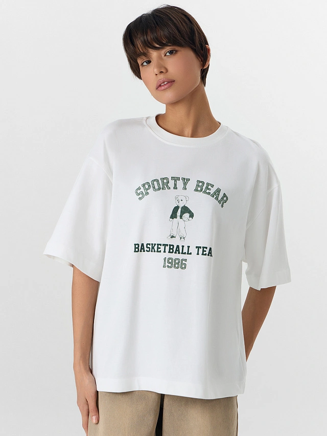 Белая женская футболка оверсайз с надписью «Спортивный мишка. Баскетбольная команда 1986» — выбор для расслабленного образа с винтажным настроением. Она выполнена из натурального хлопка, который дышит и дарит коже приятную мягкость. Свободный крой со спущенной линией плеча и короткие рукава создают непринуждённый силуэт, в котором вы будете чувствовать себя комфортно в любой ситуации.