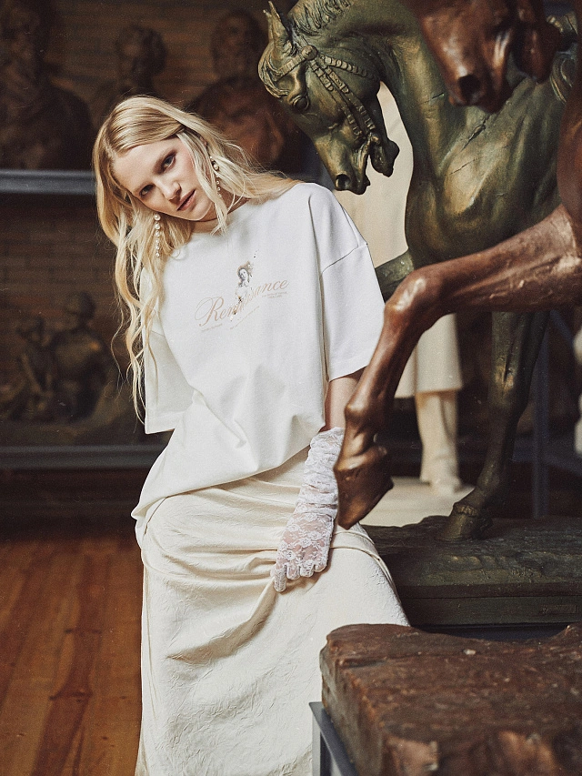 Белая женская футболка оверсайз с минималистичным принтом и надписью «Ренессанс. Искусство, пожалуйста, не трогай руками» — это стильная и свободная модель для повседневной носки. Она выполнена из мягкого хлопкового трикотажа.