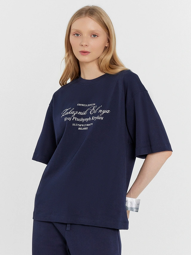 Футболка женская синяя из коллекции «zakaзnik el’nya / Заказник Ельня»